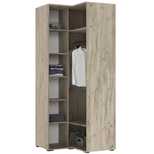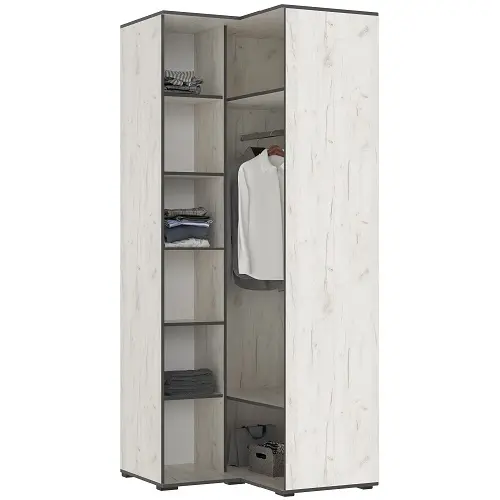Шкаф угловой модульный Норд — позволяет грамотно обыграть планировку комнаты, скрывая архитектурные недостатки углов и предоставляя взамен колоссальный объем для хранения.