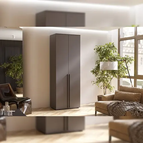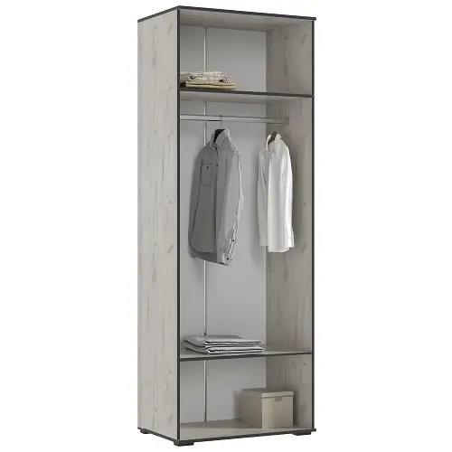 Узкий шкаф Норд — базовая модель, которая растет вместе с Вашими потребностями. Его можно использовать как одиночный модуль или составить из нескольких шкафов эффектную гардеробную стенку под любой размер комнаты.